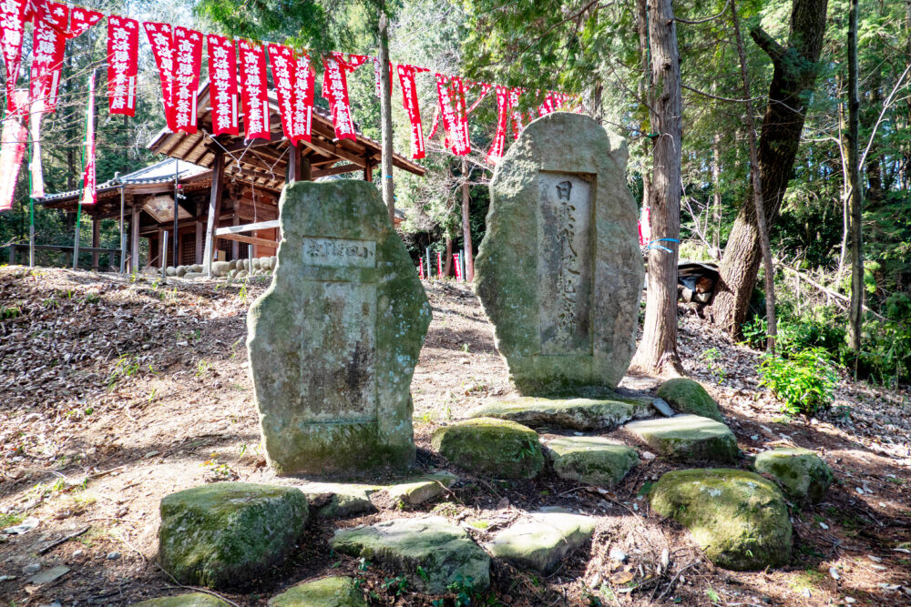郷土で飼育され、農耕や交通運輸に従った馬が十五年戦争といわれる長い期間中召集され戦場でたおれた軍馬の慰霊のため建立されたものである。 近郷の馬を扱う人々が、この山に馬をひいて参詣に登って来たそうです。