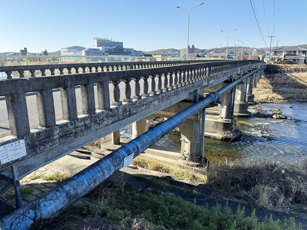 土岐津橋は橋の長さは約100m、土岐川にかかり三共橋と中央橋の中間、土岐市駅より南東約1kmのところにあります。